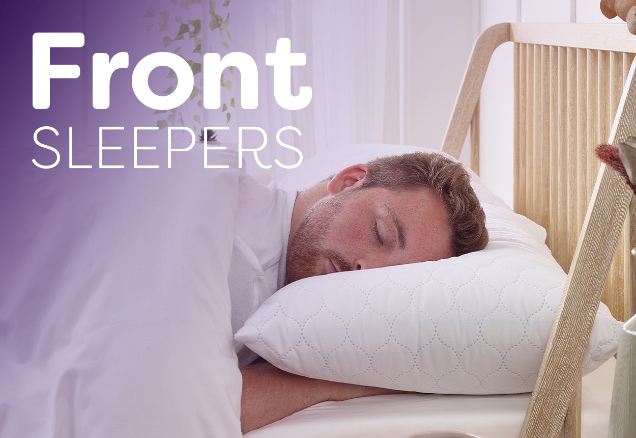 Sleep mostly on your front. Choose a softer pillow to comfortably align your head and body.