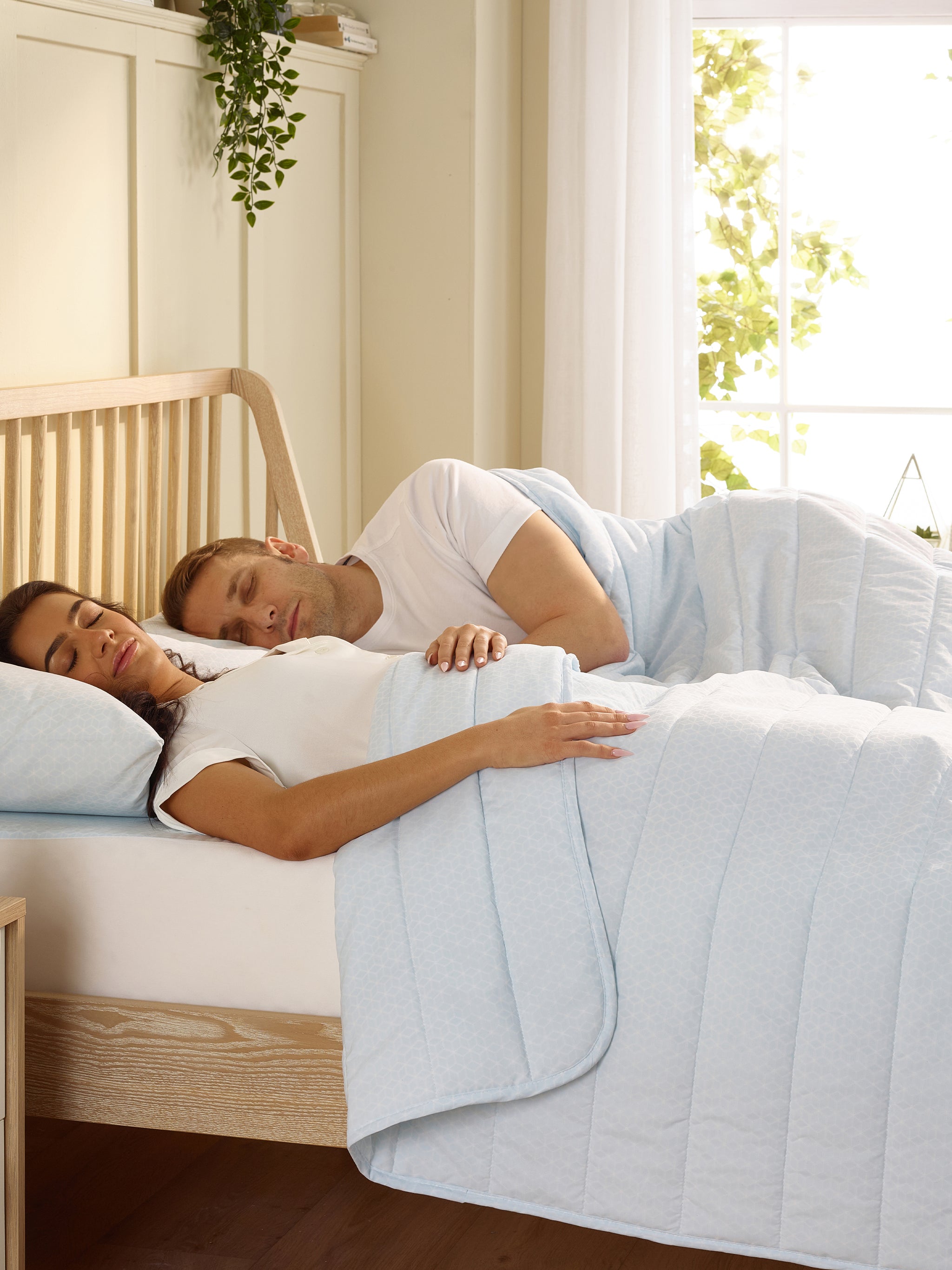 The Slumberdown Cool Summer Duvet is designed for our unpredictable summers. With it�s adaptive technology Our NEW cool summer range takes the heat away when you�re too warm and gives it back when you cool down. The Slumberdown Cool Touch Duvet has been crafted to improve your comfort through the night in order to promote more restful sleep. The temperature-sensitive fabric regulates your temperature by absorbing heat when you are too hot and gradually releasing it as you cool down, ensuring an optimal temperature for the perfect night's sleep.
